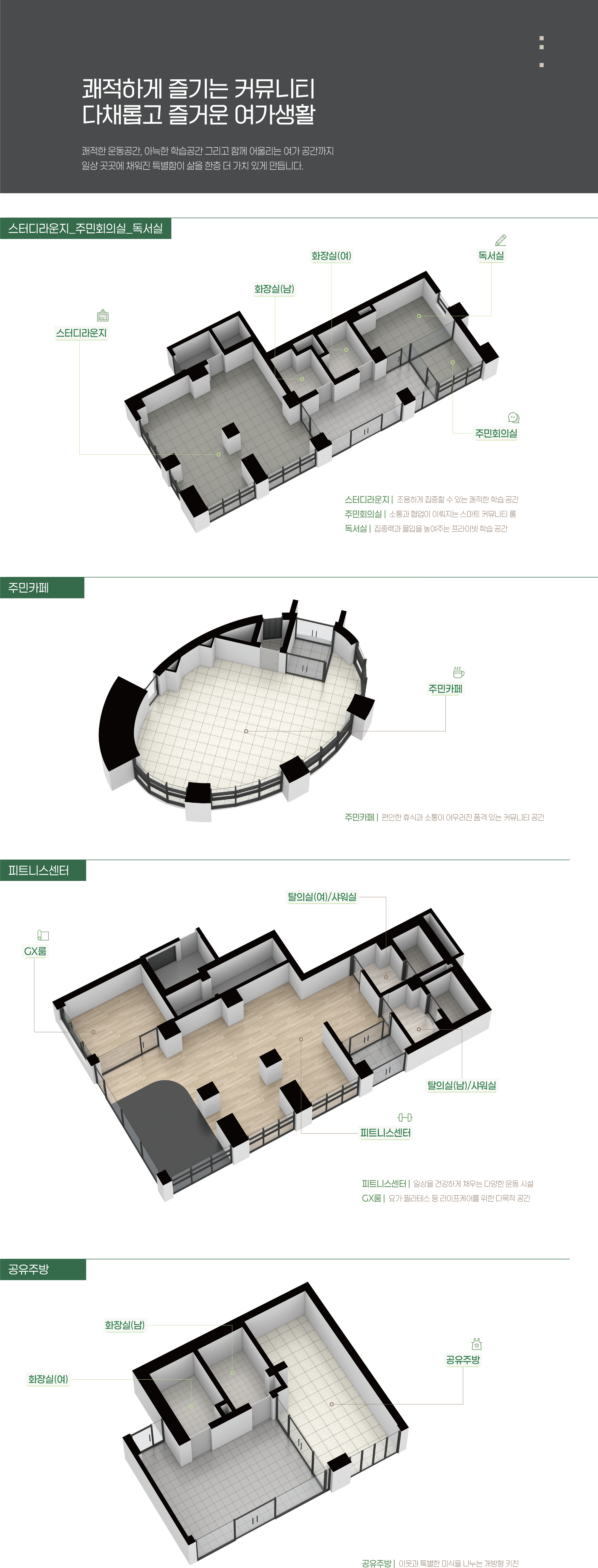 ※ 상기 커뮤니티시설 평면도는 입주자의 이해를 돕기 위한 개략도 및 참고용이므로 실제와 차이가 있을 수 있으며 향후 변경될 수 있습니다.